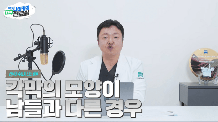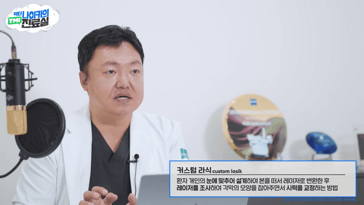 마지막으로 라식 수술이 있습니다. 라식 수술을 하는 케이스는 이전에 비해서 많이 줄어들었습니다. 하지만 각막 모양이 다른 사람들과 다르다면 라식 수술을 받는 것이 좋습니다. 커스텀 라식은 환자 눈 모양에 맞추어 수술을 설계합니다. 기존 각막 모양을 본뜬 후 이에 맞추어 레이저를 조사해 각막 모양과 시력을 함께 교정할 수 있습니다. 이 기능은 스마일이나 스마일 프로에서는 사용할 수 없기 때문에, 각막 모양이 좀 다른 분들이라면 라식 수술을 통해 시력을 교정할 수 있습니다. 다만 라식의 경우 수술 후 지속적인 안구 건조를 느낄 수 있고, 외부 충격에 약하다는 단점이 있어 조심하는 것이 좋습니다.