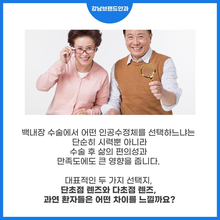 백내장수술 단초점 렌즈와 다초점 렌즈, 환자 만족도 비교