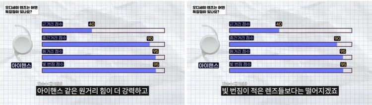 각각 렌즈마다 장점이 있는 부분들이 있기 때문에 예를 들어 근거리로 따지면