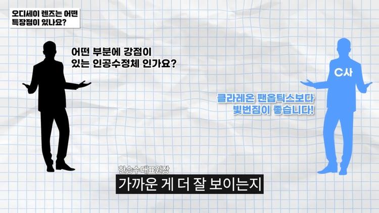 기존에 논문들이나 의사들이 다초점 렌즈에서 스탠다드한 모습으로 보통 보는 게 클라레온 팬옵틱스 렌즈라고 저는 생각합니다. 그러다 보니 어떤 논문이든 발표 자료든 또는 병원에서 판단을 하는 데 있어서 기준이 클라레온 팬옵틱스를 기반으로 ‘이거보다 빛번짐이 더 적은지, 가까운 게 더 잘 보이는지’ 이런 기준으로서 역할을 많이 했습니다. 그런 이유가 되는 게 여러 상황에서 사용을 했을 때 가장 그래도 모난 데가 적고 두루두루 보는데 무난한 결과를 많이 냈다고 판단을 하는데