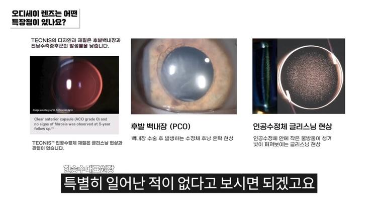 사실 이제 저희가 이 오디세이 렌즈를 공급받아 사용한지가 어느 정도 시간이 흘렀으나 여러 이유로 인해 가지고 대외적으로 공개를 할 수 없었던 점이 좀 아쉬웠습니다. 기다리던 렌즈로 수술받은 분들이 많았고 또 수술을 실제 진행을 해 보니 결과적으로 봤을 때 기대 이상의퍼포먼스가 나오는 점들은 상당히 의사 입장에서도 상당히 좋은 경험입니다.