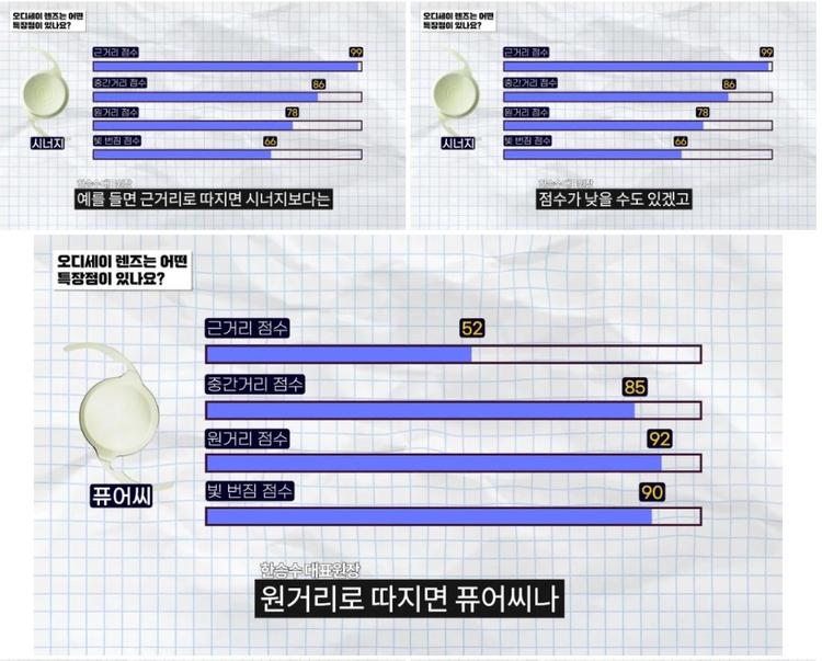 하지만 두루두루 보고 싶어 하시는, 종합 점수가 높은 렌즈를 선호하시 분들께서는 오디세이 렌즈가 장점이 될 수도 있습니다.