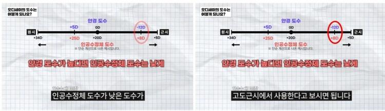 인공수정체 도수가 높은 숫자의 도수일수록 원시에 가까운 분들이 사용하는 렌즈라고 보시면 됩니다.