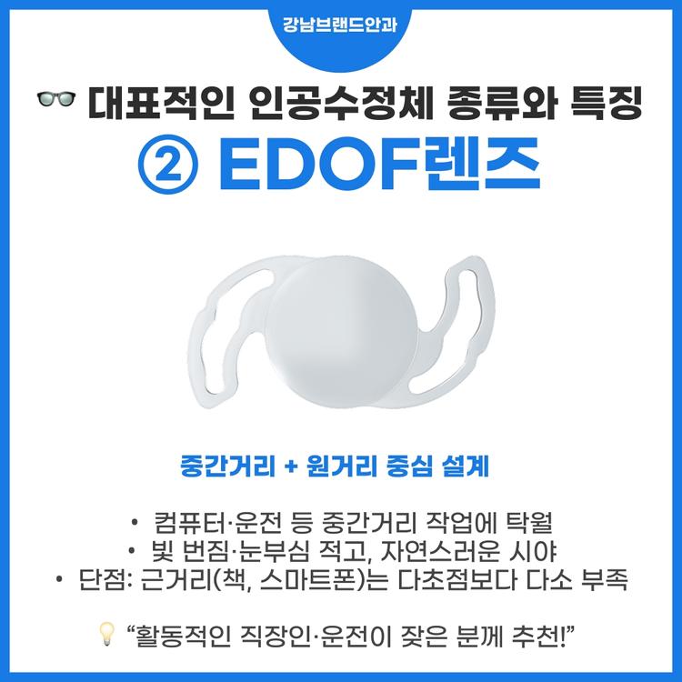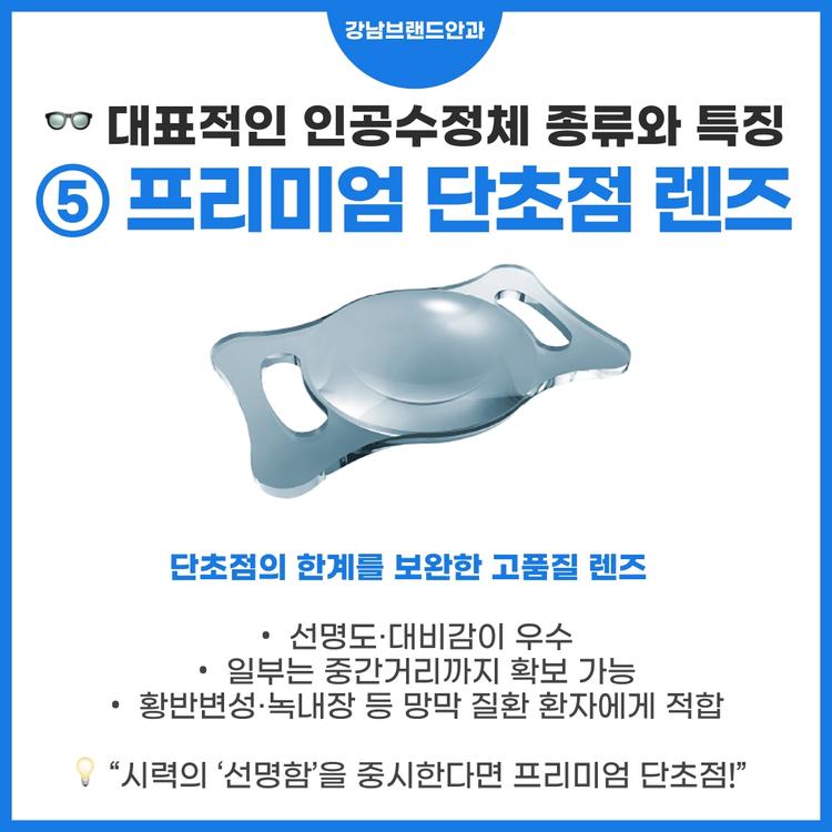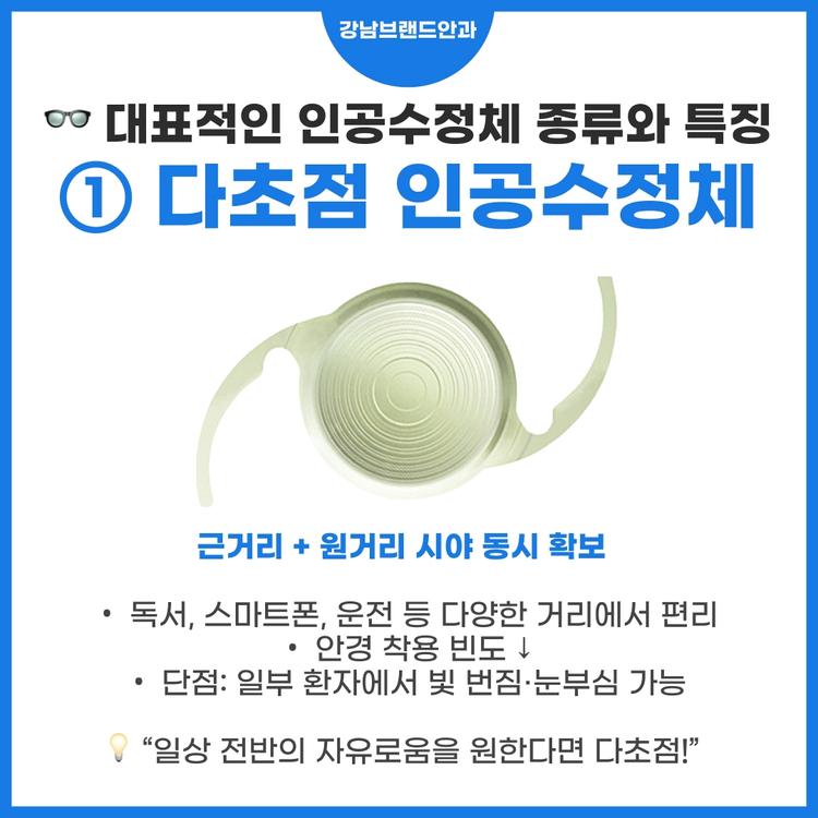 최근에는 다양한 기능을 가진 인공수정체가 개발되어 환자의 생활 패턴에 맞는 맞춤형 선택이 가능해졌습니다. 대표적인 종류와 특징을 살펴보겠습니다.