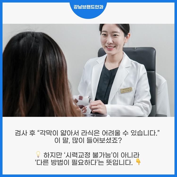 시력교정술을 고민 중인 분들이 가장 많이 듣는 말 중 하나가 바로 “각막이 얇아서 라식은 어려울 수 있습니다.” 입니다.