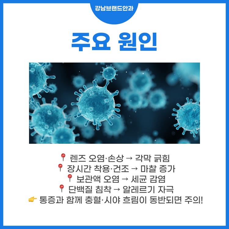 📍 1️⃣ 렌즈 오염 또는 손상 – 이물질이 붙거나 표면이 찢어지면 각막이 긁히면서 통증 유발 📍 2️⃣ 건조한 환경 – 장시간 컴퓨터·스마트폰 사용 시 눈물 증발로 렌즈 마찰 증가 📍 3️⃣ 착용 시간 과다 – 권장 시간(하루 8시간 내외)을 초과하면 각막이 산소 부족 상태가 되어 통증 발생 📍 4️⃣ 보관액 또는 세척 불량 – 세균 오염된 용액은 각막염 위험 증가 📍 5️⃣ 알레르기 또는 단백질 침착 – 렌즈 표면에 단백질이 쌓이면 눈꺼풀·결막 자극으로 염증 유발 👉 이런 경우 통증뿐 아니라 눈의 충혈, 시야 흐림, 눈부심이 함께 나타나기도 합니다.