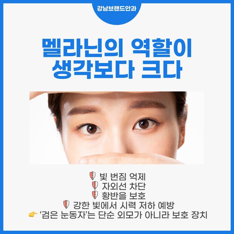 짙은 눈 색은 다음과 같은 보호 역할을 합니다. 강한 빛으로부터 망막 보호 자외선으로 인한 손상 감소 눈부심 줄이기 황반 손상 위험 완화 즉, 눈을 안전하게 지키기 위해 멜라닌이 더 많이 필요했던 환경이 지금의 눈동자 색을 만들었다고 볼 수 있습니다.