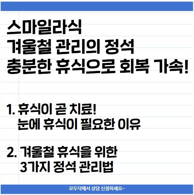 스마일라식 겨울철 관리의 정석 충분한 휴식으로 회복 가속!