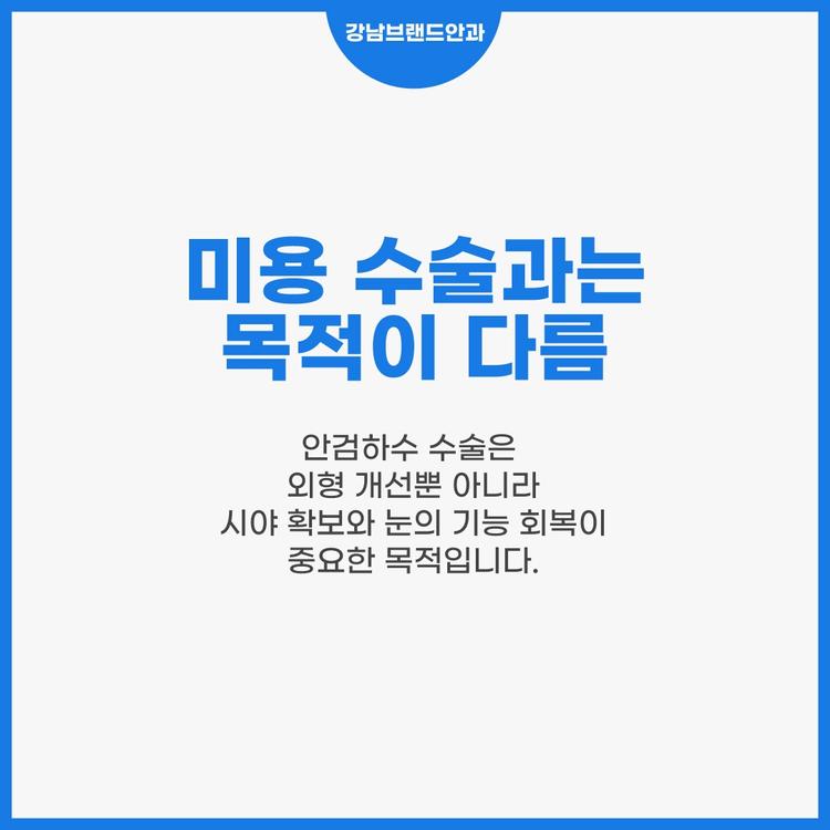 안검하수는 참고 지내야 하는 노화 현상이 아니다. 현재 눈 상태에 따라 기능적 문제가 있다면, 정확한 진단을 통해 치료 여부를 판단하는 것이 중요하다. 수술의 목적 역시 ‘눈을 크게 만드는 것’이 아니라, 눈이 제 기능을 하도록 돕는 것이라는 점을 이해할 필요가 있다.