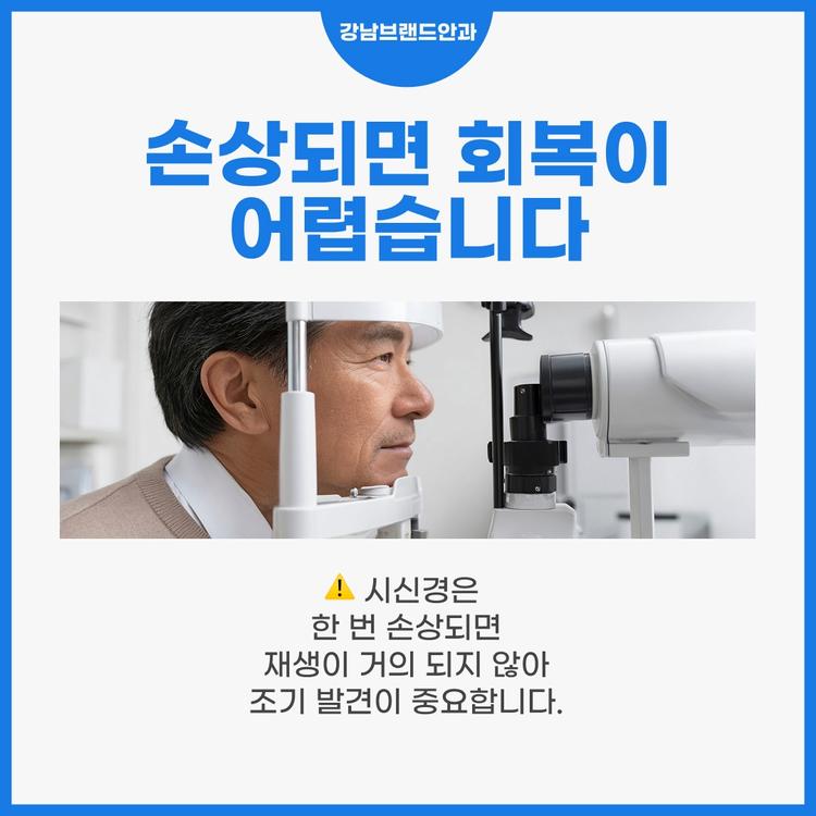 시신경의 특징 중 하나는 재생이 거의 되지 않는다는 점이다. 말초 신경과 달리 시신경은 중추신경계에 속하기 때문에, 한 번 손상되면 회복이 매우 제한적이다. 그래서 시신경 질환은 조기 발견과 진행 억제가 무엇보다 중요하다.