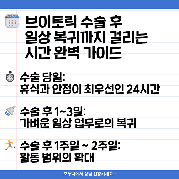브이토릭 수술 후 일상 복귀까지 걸리는 시간 완벽 가이드