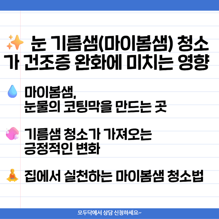 눈 기름샘(마이봄샘) 청소가 건조증 완화에 미치는 영향