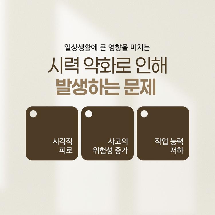 노안으로 인한 시력 약화는 여러 가지 문제를 초래하며, 이는 일상생활에 큰 영향을 미칠 수 있습니다. 시각적 피로는 노안의 흔한 증상 중 하나로, 눈의 조절 기능이 과다 사용되면서 발생하는데요. 가까운 물체를 보기 위해 눈이 지속적으로 긴장하게 되면 눈의 피로도가 쌓이고, 이는 두통으로 이어질 수 있습니다. 이러한 시각적 피로는 집중력을 저하하여 일상적인 활동에도 부정적인 영향을 미칩니다. 더불어, 시력이 저하되면 일상적인 활동에서 사고의 위험성이 증가하는데요. 도로를 건널 때 차량을 제대로 인식하지 못하거나 계단을 오르내릴 때 발을 헛디딜 위험이 증가하게 됩니다. 작업 능력 또한, 저하되는데요. 세밀한 작업이 요구되는 업무에서는 노안으로 인해 시력이 저하되면 작업의 정확성과 효율성이 떨어지게 됩니다. 글씨를 읽거나 작은 물체를 다루는 작업에서 어려움을 겪게 되어 업무 수행에 지장을 초래하기도 하는데요. 이처럼 노안으로 인한 시력 저하는 단순한 불편함을 넘어, 일상생활의 전반에 걸쳐 부정적인 영향을 미치게 됩니다.