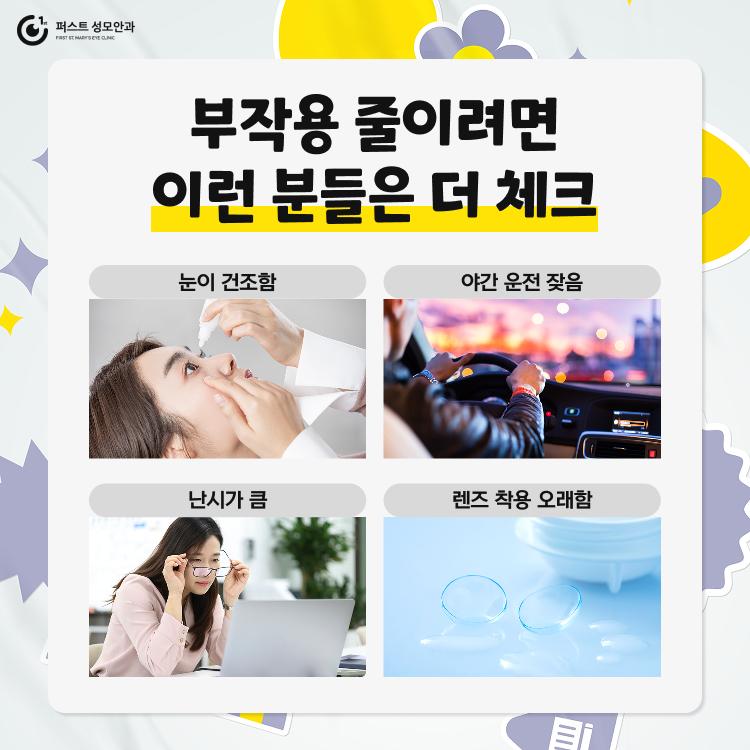 다음과 같은 상황에서는 검사 결과가 더욱 중요하게 작용할 수 있습니다. ✔️ 평소 눈 건조감을 자주 느끼는 경우 ✔️ 야간 운전을 자주 하는 경우 ✔️ 난시가 비교적 큰 경우 ✔️ 콘택트렌즈를 장기간 착용한 경우 이러한 조건에서는 눈 상태를 보다 정확히 확인하는 과정이 중요할 수 있습니다.